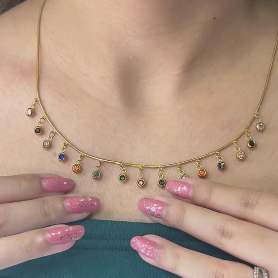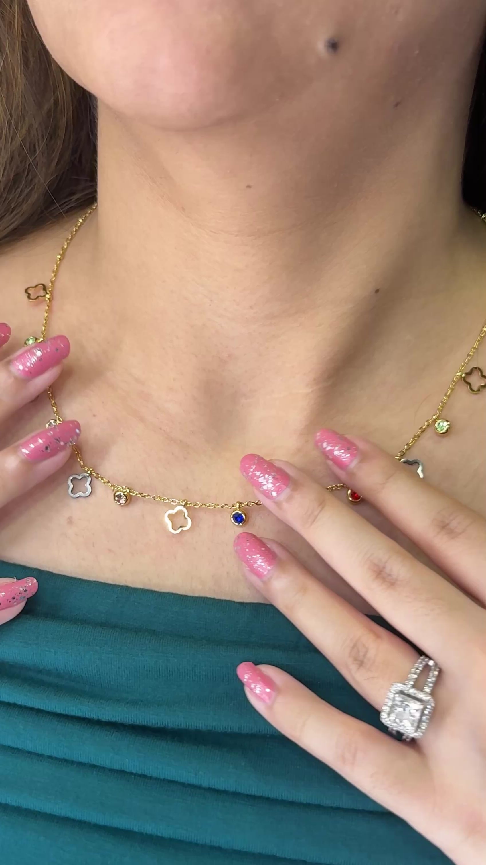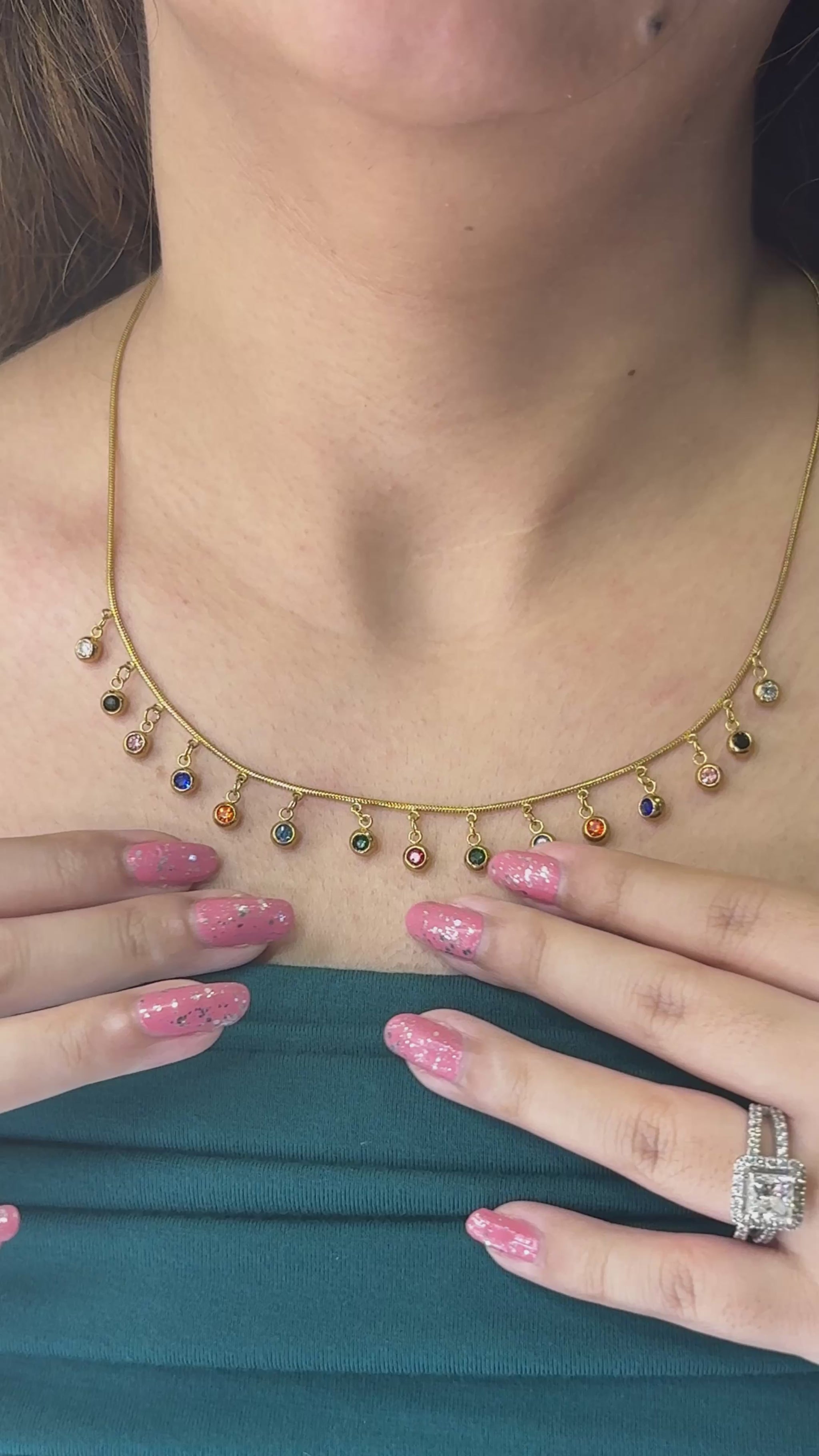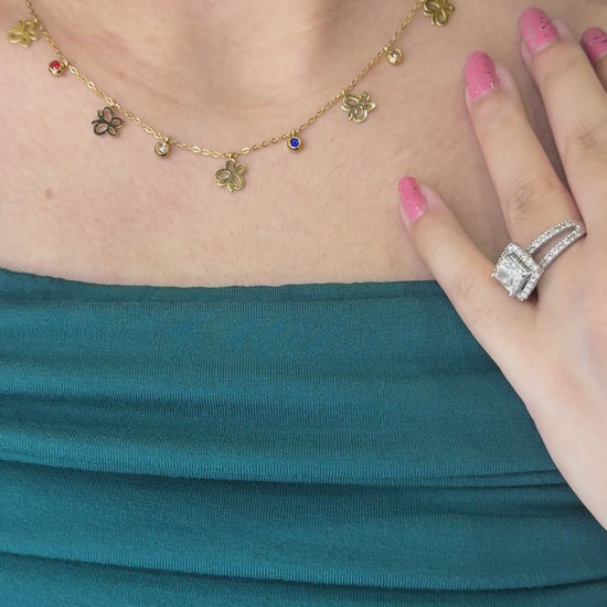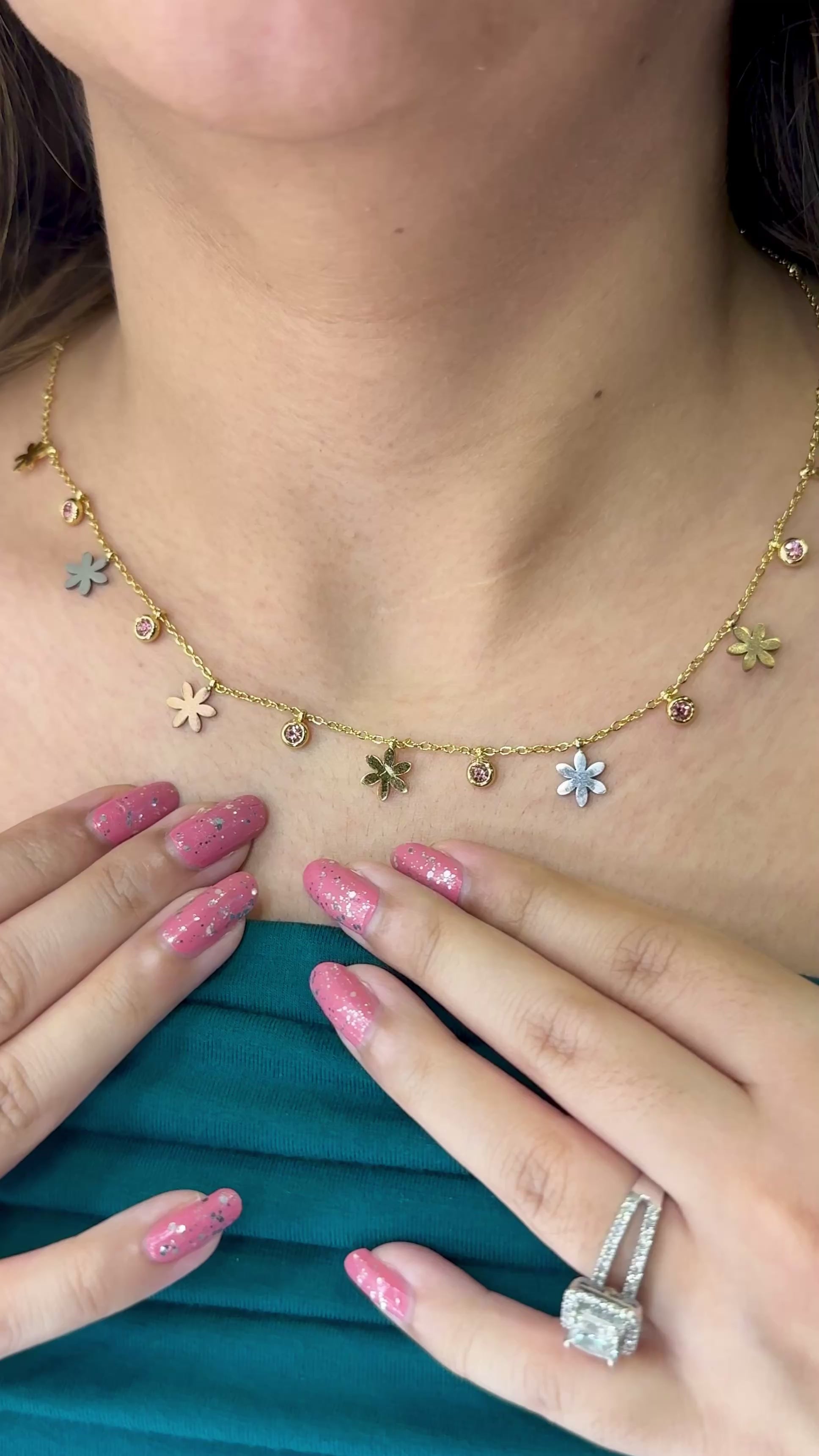 Our Charm Play Necklace brings together delicate discs and sparkling stones, finished with a choice of whimsical charms — from hearts that speak of love, to butterflies that embody transformation, to clovers that whisper good fortune.