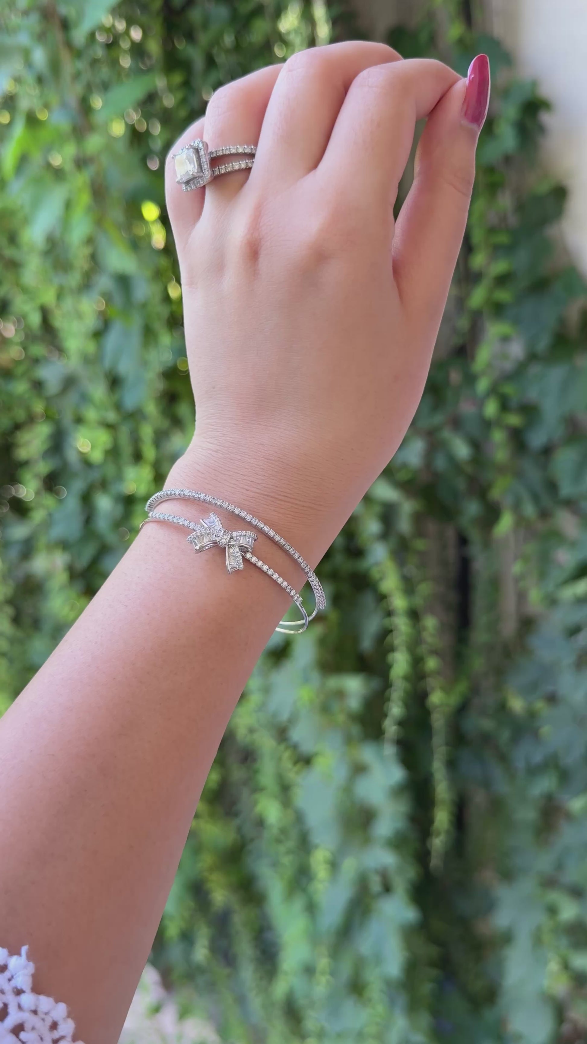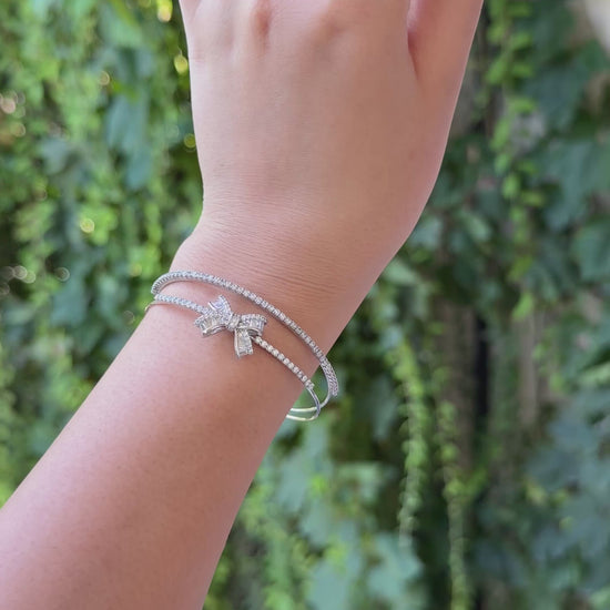 A delicate dance of sparkle and sophistication — the Forever Bows bracelets feature intricately crafted bow motifs encrusted with fine cubic zirconia, set on a sleek adjustable bangle.