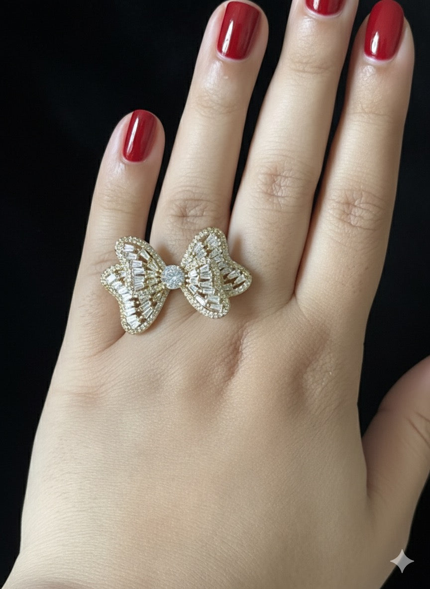 A bow that speaks volumes. The Glimmer Knot ring is where elegance meets playfulness—set with a stunning mix of baguette and round-cut sparkling stonesfor maximum sparkle.