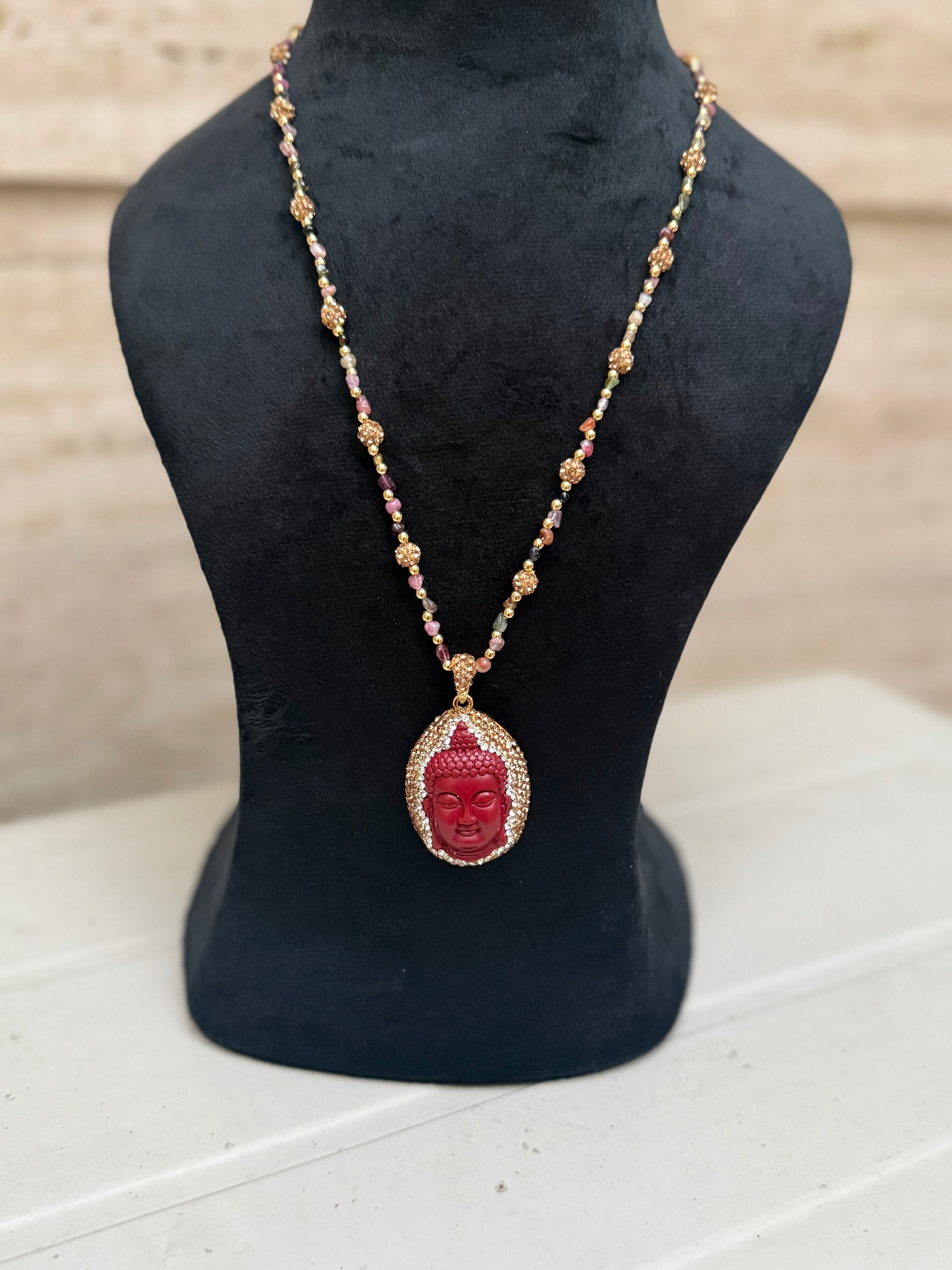 Our Buddha pendant necklace, strung with luminous beads, radiates calm, protection, and unmistakable charm.