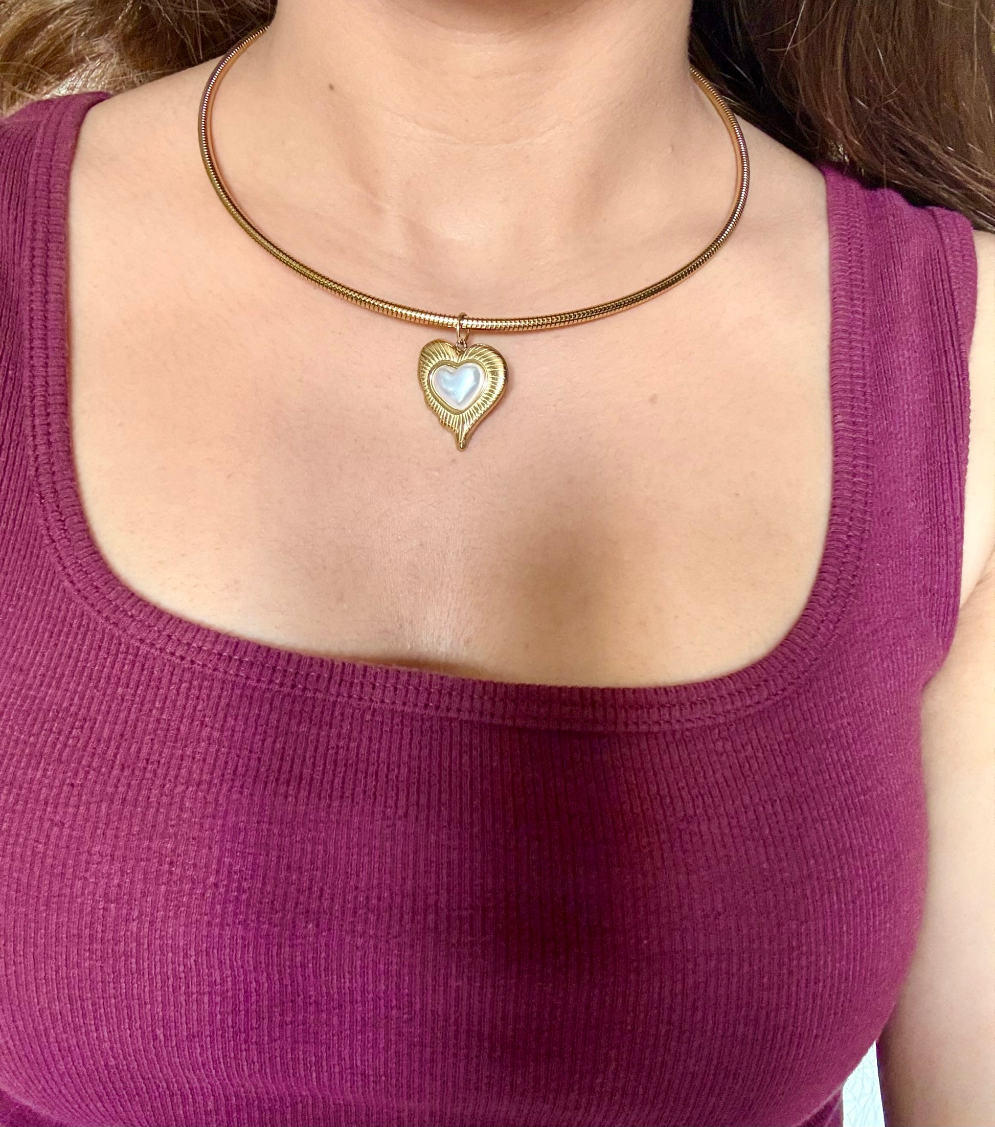A charming blend of elegance and warmth, this delicate gold pendant cradles a lustrous heart-shaped pearl, symbolizing love and comfort. Both chain and pendant are anti tarnish.